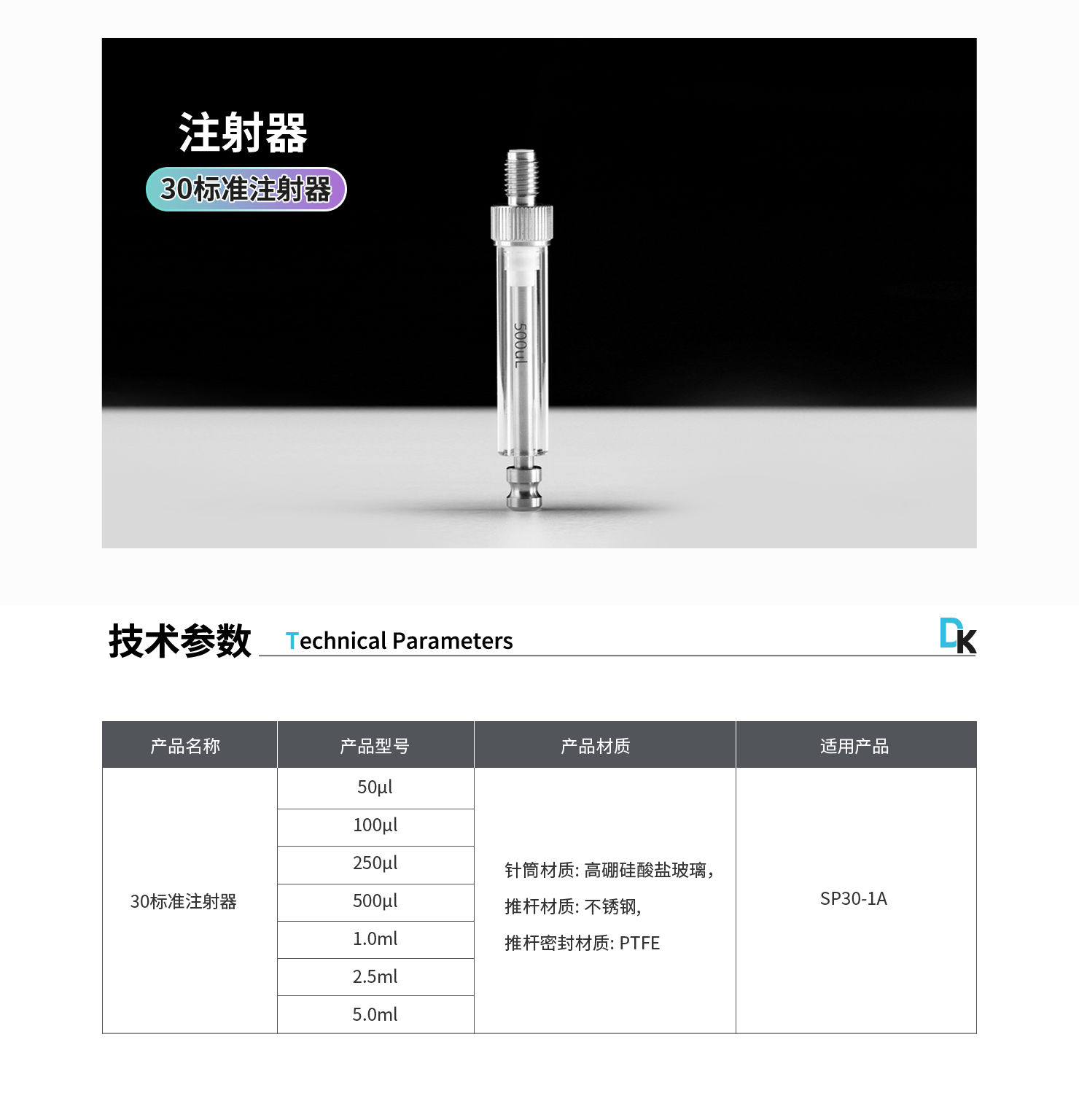 注射器型號(hào):50μL、100μL、250μL、500μL、1.0mL、2.5mL、5.0mL