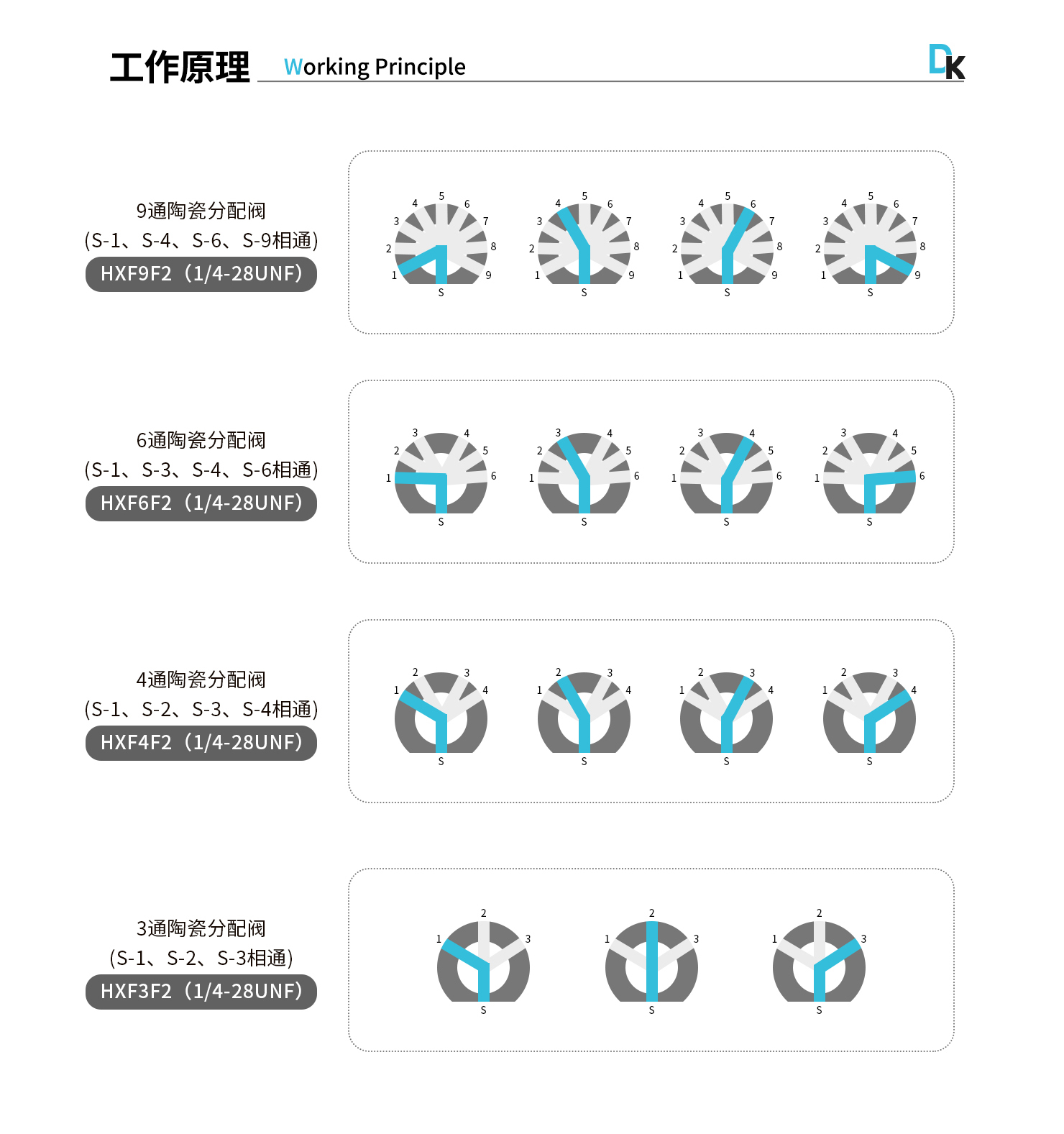 換向閥種類:3/4/6/9通陶瓷分配閥