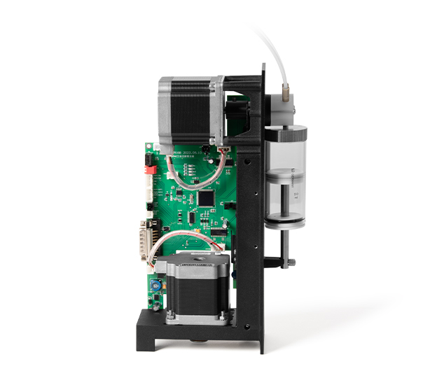 活塞驅(qū)動:步進(jìn)電機(jī)驅(qū)動絲桿,光電編碼器檢測失步以及回零位