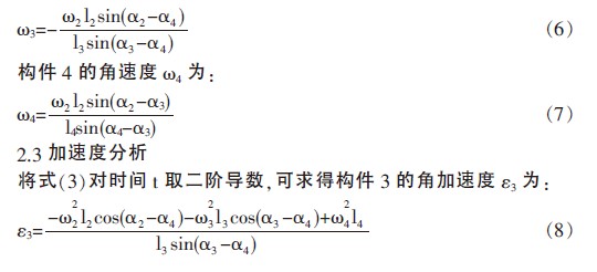 將式(3)對(duì)時(shí)間t取一階導(dǎo)數(shù),可求得構(gòu)件3的角速度ω3 為: