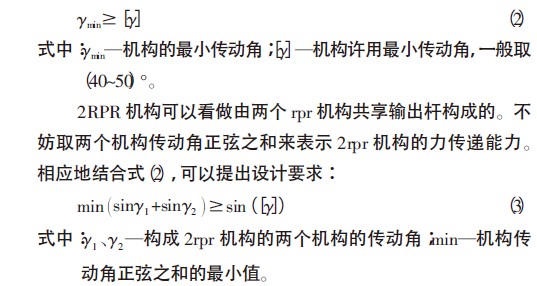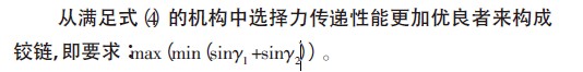 在機(jī)構(gòu)設(shè)計(jì)中,一般通過限定機(jī)構(gòu)的最小傳動(dòng)角來確保機(jī)構(gòu)具有良好的傳力特性,即要求: