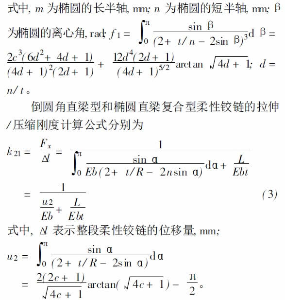 倒圓角直梁型和橢圓直梁復(fù)合型柔性鉸鏈的彎曲剛度計(jì)算公式分別為