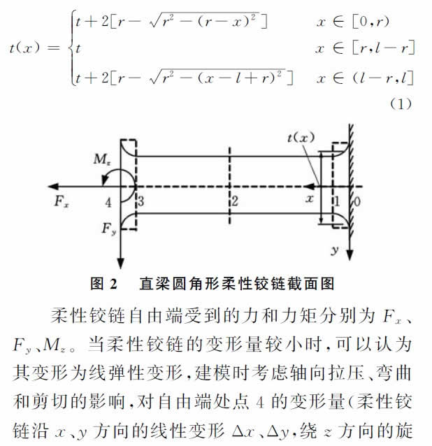 基于上述研究現(xiàn)狀,本文針對直梁圓角形柔性鉸鏈的柔度矩陣進行了研究。