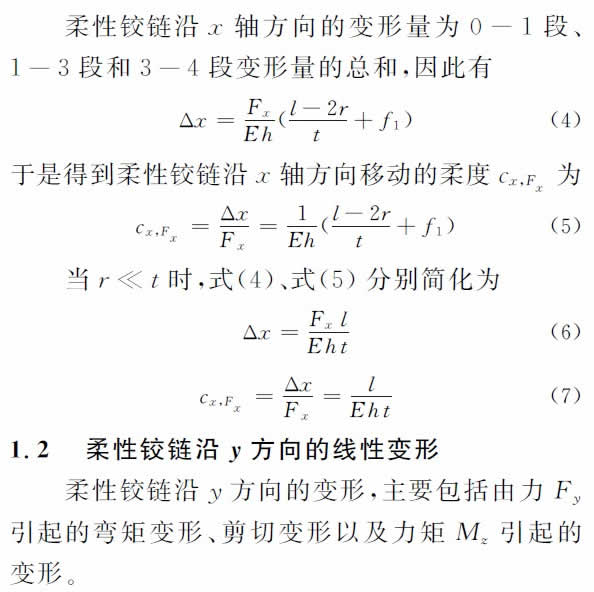 本文建立的直梁圓角形柔性鉸鏈柔度矩陣閉環(huán)解析模型,可為柔性鉸鏈以及柔性體機構的設計優(yōu)化提供理論依據。